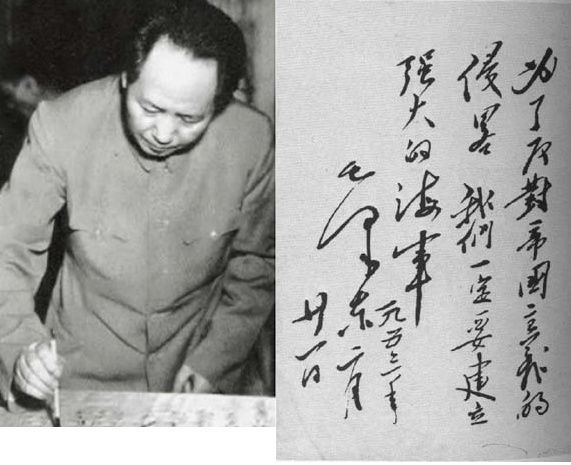 1953年,毛澤東同志視察“長江”艦,在艦上揮毫寫下“為了反對(duì)帝國主義的侵略,我們一定要建立強(qiáng)大的海軍”。