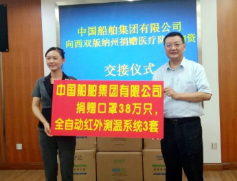 面對新冠肺炎疫情全球持續蔓延、我國周邊有關國家疫情嚴峻及云南省防控境外疫情輸入壓力加大等形勢,中國船舶集團黨組深入貫徹落實中央決策部署,決定向云南省西雙版納自治州及集團公司在滇定點扶貧縣鶴慶、勐臘和丘北捐贈42萬只口罩、5臺全自動紅外測溫系統和100部手持式額溫槍等防疫物資,以軍工央企的政治使命、責任擔當和實際行動,助力云南省打好疫情防控攻堅戰。