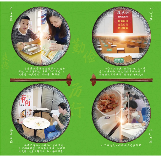 ????中國船舶集團堅決貫徹落實習近平總書記關于制止餐飲浪費行為的重要指示精神,從制度出發、從細節入手、從點滴做起,通過組織開展“制止餐飲浪費踐行光盤行動”專項宣傳引導活動、制作“光盤行動”宣傳手冊等一系列有力措施,全面倡導勤儉節約、反對浪費的文明理念,大力營造浪費可恥、節約為榮的氛圍,取得了良好效果。