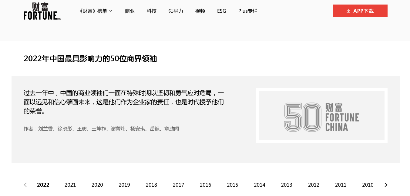 據(jù)了解,《財(cái)富》于2005年開(kāi)始評(píng)選“中國(guó)最具影響力的商界領(lǐng)袖”。