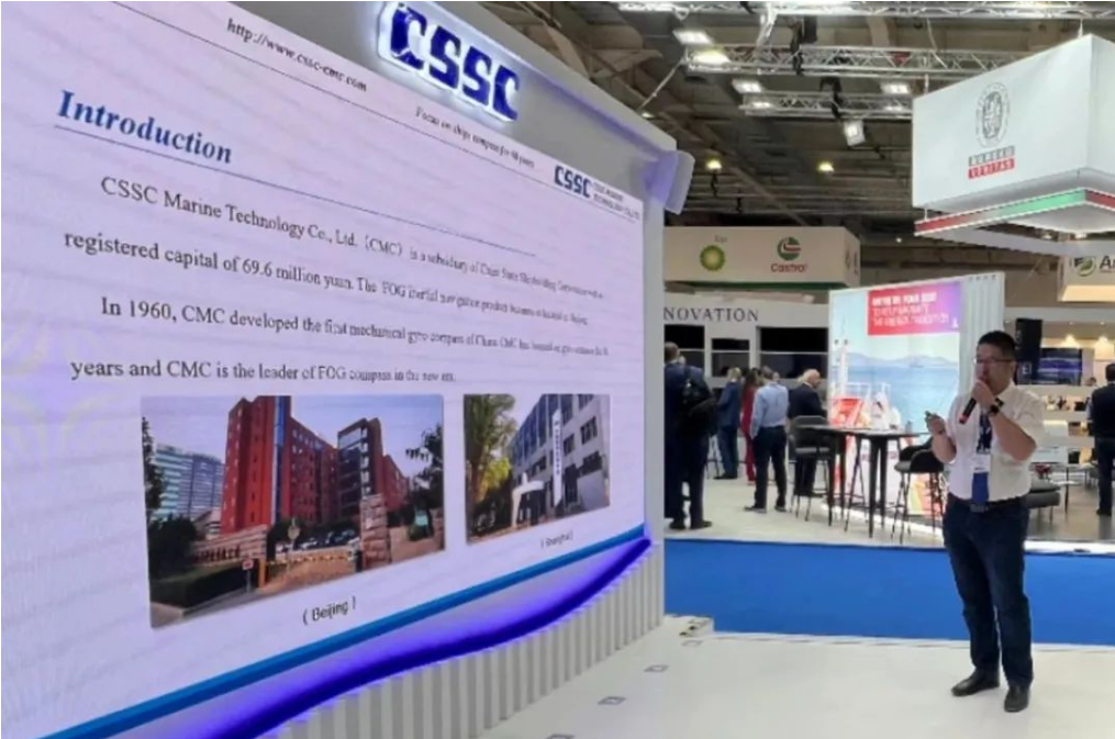 此次展會,中國船舶集團攜旗下19家成員單位參展,有關(guān)成員單位負責(zé)人率隊赴展會開展重點船海項目經(jīng)營洽談并拜訪當(dāng)?shù)睾椭苓厙铱蛻簟<瘓F公司以“共贏未來”為參展主題,設(shè)置集團總體區(qū)、綠色航運解決方案區(qū)、低碳環(huán)保配套設(shè)備區(qū)共3個展示區(qū)域,重點展示了135500總噸大型郵輪、175000方LNG運輸船、24000箱超大型集裝箱船、210000噸氨燃料散貨船、LNG雙燃料VLCC等一系列高技術(shù)、高附加值明星產(chǎn)品,以及CPGC-WinGD 10X92DF-M甲醇雙燃料發(fā)動機、船用碳捕捉系統(tǒng)等全球船東高度關(guān)注的綠色低碳配套設(shè)備。同時,通過展臺上醒目的品牌標識、層級化的品牌體系圖、富有感染力的品牌推介視頻,首次面向全球客戶,立體化展示“中國船舶”品牌及下屬企業(yè)品牌和產(chǎn)品品牌體系,進一步強化了集團公司品牌形象。
