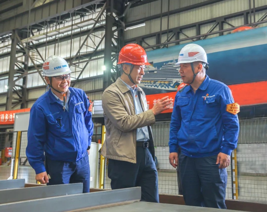 在相關(guān)二級管理單位,徐鵬調(diào)研了相關(guān)重點實驗室、車間和在建的國產(chǎn)大型郵輪“愛達·花城號”,與一線職工深入交流,并聽取了單位負責人關(guān)于經(jīng)營生產(chǎn)、公司治理、深化改革、隊伍建設(shè)、黨的建設(shè)等方面情況匯報。