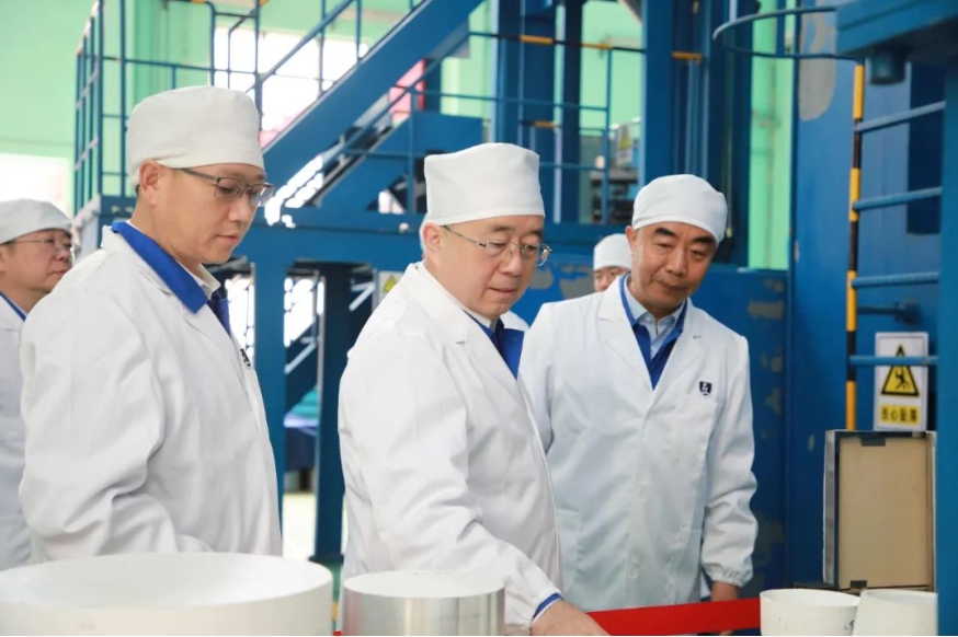 王國強深入生產科研一線,調研了相關裝備園區、車間和重點產品,與全國技術能手、一線工人就工裝應用、工藝工法、安全生產等進行親切交流,聽取了企業負責人關于生產經營、科技創新、人才培養、精益管理、發展規劃、黨的建設等方面情況匯報,并對下一步工作提出具體要求。
