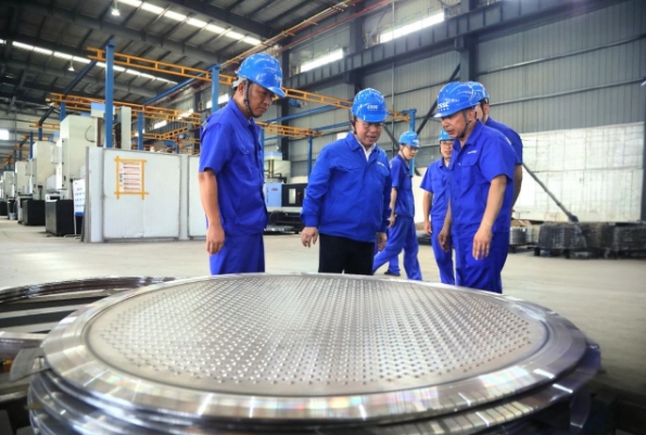 王國強(qiáng)深入科研生產(chǎn)一線,調(diào)研了相關(guān)車間、實驗室、勞模創(chuàng)新工作室,察看了智能制造中心、重點產(chǎn)品、相關(guān)技術(shù)進(jìn)展;慰問了勞模工匠、一線員工,與他們就現(xiàn)場管理看板優(yōu)化、工藝改善等交流互動,勉勵他們健康生活、快樂工作,叮囑相關(guān)單位負(fù)責(zé)人要做好防暑降溫工作;聽取了相關(guān)二級管理單位生產(chǎn)經(jīng)營、深化改革、科技創(chuàng)新、人才培養(yǎng)、黨的建設(shè)等方面情況匯報。