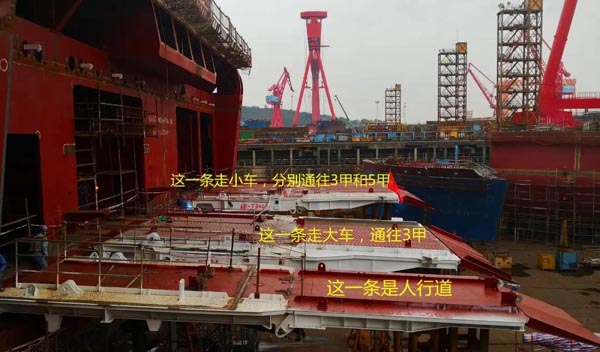 ????3月4日,中國船舶集團所屬廣船國際有限公司建造的阿爾及利亞豪華客滾船完成3個艉跳板的裝焊任務,建造進度又推進了一大步。該船共有4個艉門、3個艉跳板,每個跳板都承擔著不同的功能。這樣的設計,首先可以實現人車分流,更加安全 其次,大車停在3甲車庫,小車停在5甲車庫,可使船舶的重心會更低、整體更穩,最重要的是還考慮到港口條件進行了量身定做。