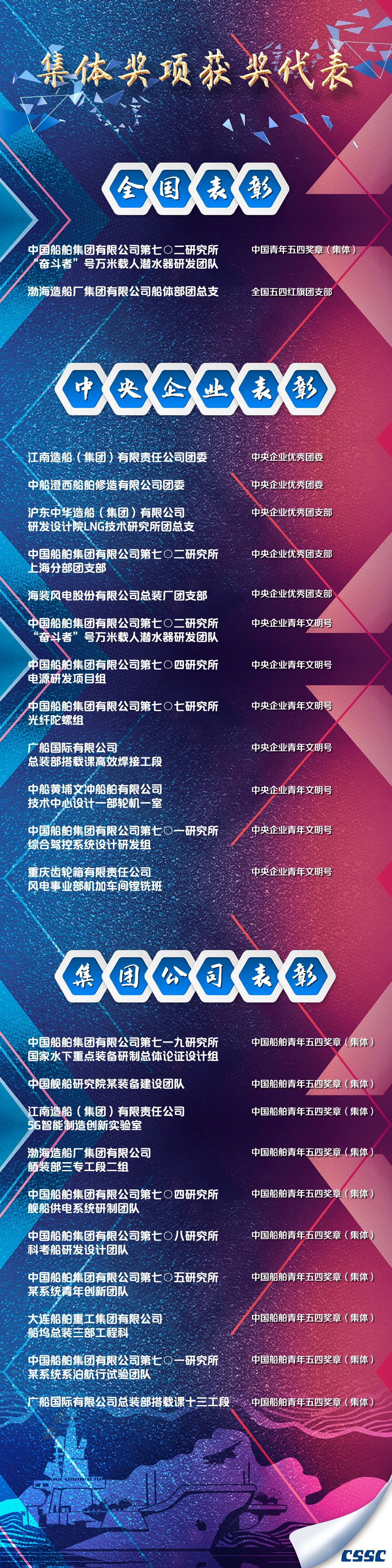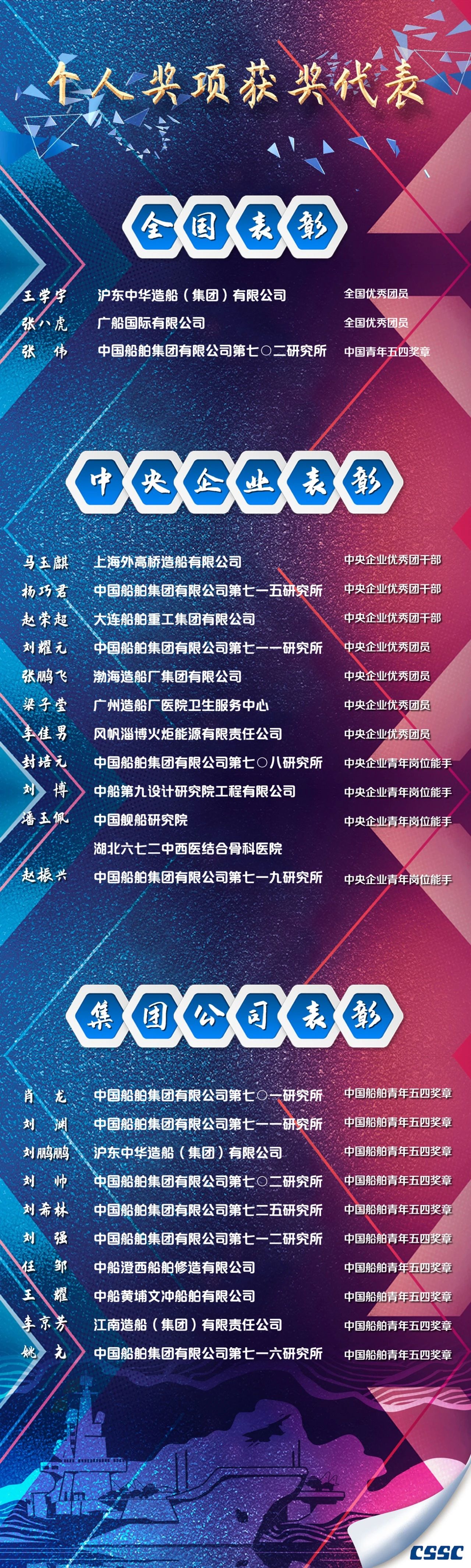 有的在生產(chǎn)一線不畏艱難、埋頭苦干,有的在服務(wù)集團發(fā)展的最基層不計得失、任勞任怨。他們把個人理想融入世界一流船舶集團的偉大事業(yè)中,書寫著新時代的青春答卷,彰顯著新時代青年的責(zé)任與擔(dān)當(dāng),為船舶青年作出了榜樣,樹立了標桿。