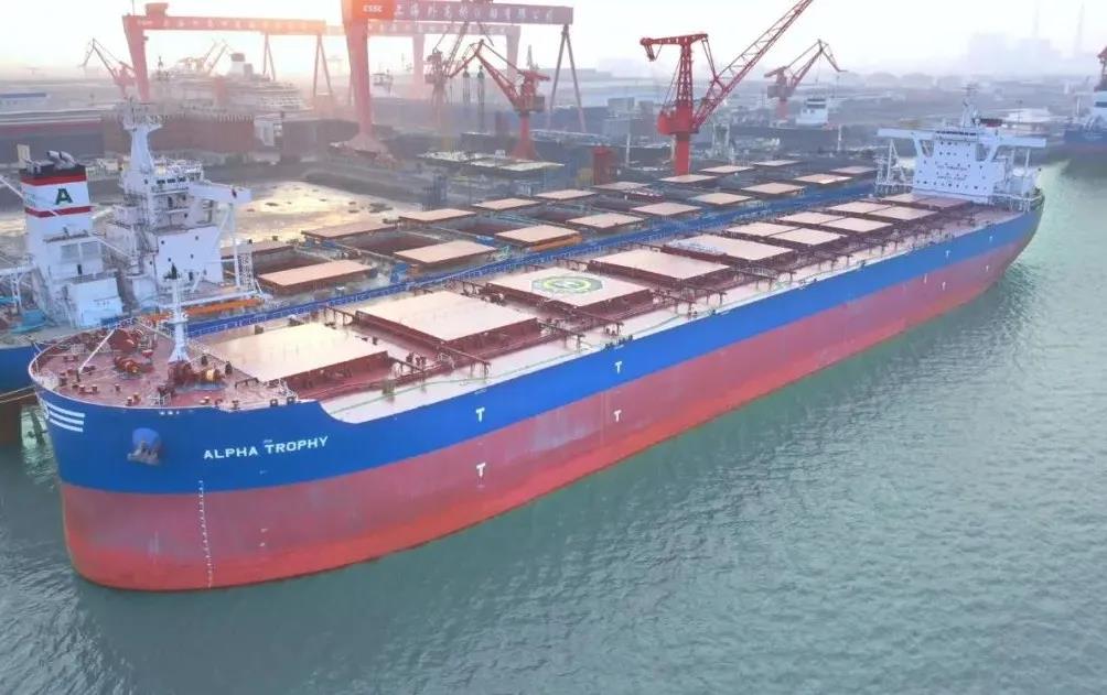 1月1日上午,中國船舶集團(tuán)旗下外高橋造船聯(lián)合中船貿(mào)易建造的21萬噸紐卡斯?fàn)栃蜕⒇洿癆LPHA TROPHY”號簽字交船,這是中國船舶企業(yè)新的一年完工交付的第一艘船,開啟中國船舶制造業(yè)2022年昂揚(yáng)奮進(jìn)新征程。