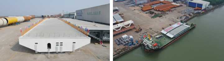 針對(duì)發(fā)運(yùn)過程,武昌造船科學(xué)編制裝船運(yùn)輸方案,自2023年1月7日伶仃洋大橋邊跨第一片鋼箱梁順利吊裝,到4月20日完成最后一片鋼箱梁吊裝,在104天的時(shí)間內(nèi),項(xiàng)目部圓滿完成了伶仃洋大橋全橋107個(gè)節(jié)段發(fā)運(yùn)工作和現(xiàn)場配合吊裝工作,有力保證了伶仃洋大橋連續(xù)吊裝施工。