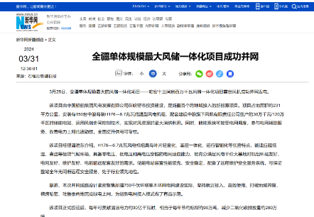 近日,中國船舶集團(tuán)旗下中船科技子公司中船風(fēng)電和哈密國投聯(lián)合開發(fā)的新疆哈密百萬千瓦風(fēng)儲(chǔ)一體化項(xiàng)目首臺風(fēng)機(jī)成功并網(wǎng)發(fā)電,央視《新聞聯(lián)播》、新華網(wǎng)和《新疆日報(bào)》等紛紛關(guān)注報(bào)道。