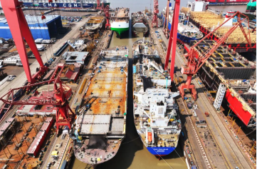 8月11日,中國(guó)船舶集團(tuán)旗下江南造船4號(hào)船塢迎來一艘99000立方米超大型乙烷乙烯運(yùn)輸船(VLEC)和一艘7800車位汽車運(yùn)輸船(PCTC)出塢 ,一艘99000立方米VLEC半船和一艘7800車位PCTC半船同步起浮,達(dá)成了“PV同步”建造模式的首批次出塢。