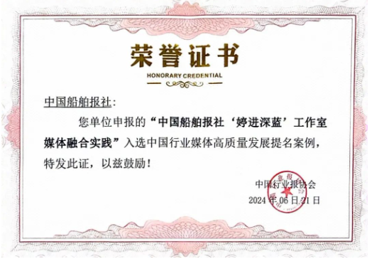 中國船舶報(bào)社“婷進(jìn)深藍(lán)”工作室,媒體融合實(shí)踐獲評中國行業(yè)媒體高質(zhì)量發(fā)展提名案例。
