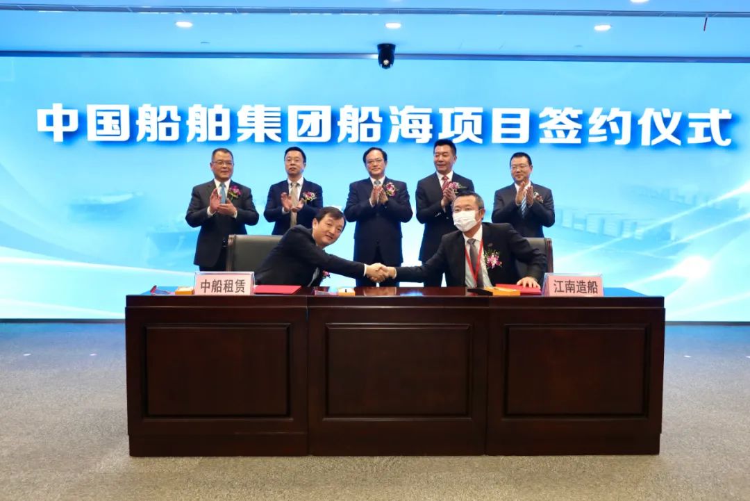 船舶建造合同簽約儀式上,在相關(guān)方領(lǐng)導(dǎo)的共同見證下,