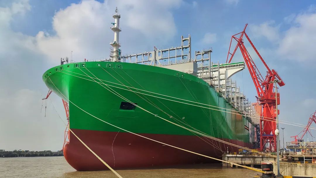 據悉,為長榮海運建造的5艘24000TEU超大型集裝箱船首制船于去年12月份出塢,計劃將于今年上半年交付,2號船正在塢內進行搭載作業(yè),3號船已開工建造。為地中海航運建造的1號船已入塢搭載總裝,2、3號船進入平臺總組階段,4號船也已開工建造。全球最大箱船建造進入“滬東中華時間”。