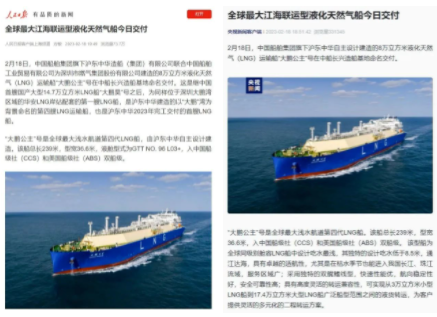 2月18日,中國船舶集團旗下滬東中華聯(lián)合中船貿(mào)易建造的8萬立方米液化天然氣(LNG)運輸船“大鵬公主”號在中船長興造船基地命名交付。這是繼中國首艘國產(chǎn)大型14.7萬立方米LNG船“大鵬昊”號之后,為同樣位于深圳大鵬灣區(qū)域的華安LNG岸站配套的第一艘LNG船,是滬東中華建造的以“大鵬”灣為背景命名的第四艘LNG運輸船,也是滬東中華2023年完工交付的首艘LNG船,全面開啟LNG船產(chǎn)能倍增戰(zhàn)略實施新征程。