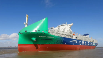 8月23日,中國船舶集團(tuán)旗下滬東中華聯(lián)合中船貿(mào)易為法國達(dá)飛海運(yùn)集團(tuán)建造的13000TEU雙燃料動力集裝箱船系列6號船“CMA CGM AMAZONIA”號命名交付。至此,該系列船6艘船全部交付,順利收官。
