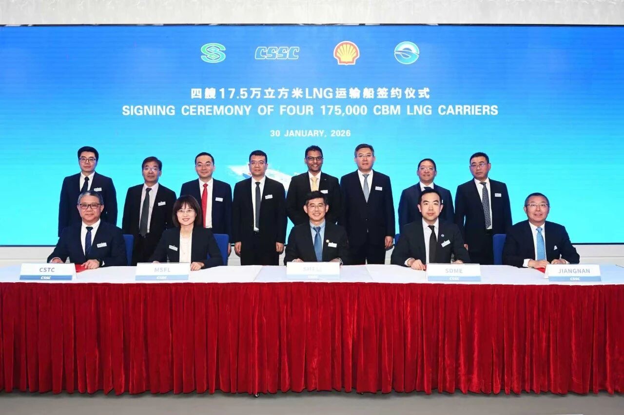 1月30日,江南造船聯合中船貿易成功獲得了4艘17.5萬立方米大型液化天然氣(LNG)運輸船建造合同。該型船是江南造船自主研發設計的最新一代智能、靈活的LNG運輸解決方案。