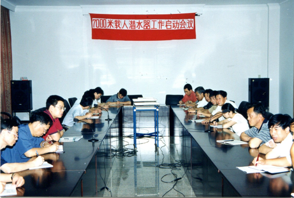 △7000米載人潛水器總體組及總師組成立大會,發言者為徐芑南。