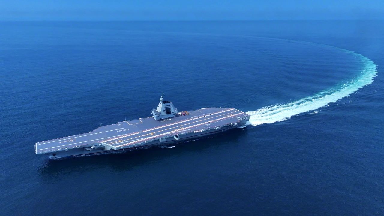 福建艦采用平直通長飛行甲板,配置電磁彈射和阻攔裝置,滿載排水量8萬余噸。下水以來,福建艦建造工作按計劃穩步推進,順利完成系泊試驗和裝設備調試。