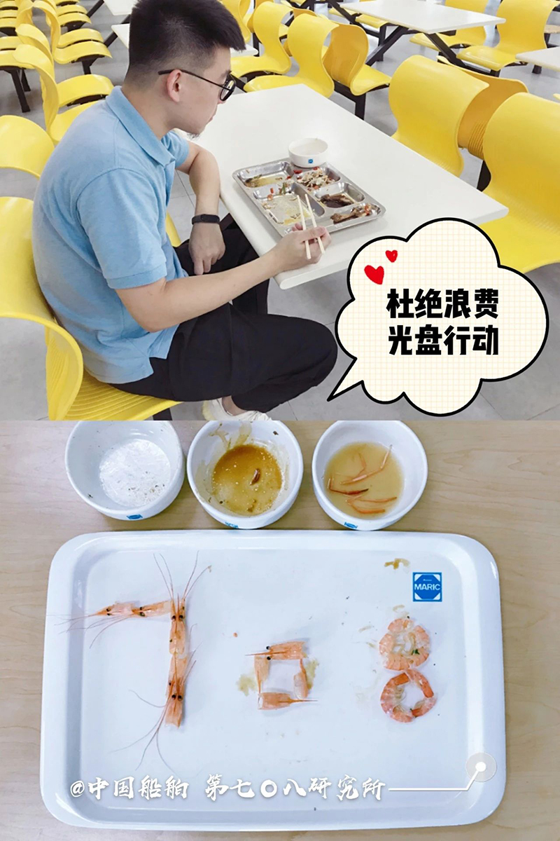 “誰知盤中餐,粒粒皆辛苦。” 自古以來 敬天惜糧、勤儉節約就是 中華民族傳統美德 中國船舶集團多家成員單位 用實際行動 杜絕“舌尖上的浪費”