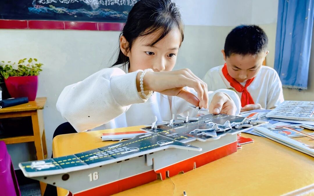 課堂特別設(shè)計趣味問答與互動實踐環(huán)節(jié)。問答環(huán)節(jié),學(xué)生們踴躍舉手搶答、主動提問;船模組裝實踐環(huán)節(jié),志愿者手把手指導(dǎo)學(xué)生對照圖紙拼接零件,當(dāng)一個個船模成型時,孩子們臉上滿是收獲的喜悅,不僅直觀掌握船舶構(gòu)造原理,更在動手過程中筑牢國防意識。此次志愿服務(wù)播下的“深藍(lán)種子”,或許將在未來生根發(fā)芽一一有人可能成為海軍戰(zhàn)士、有人或許成為工程師……我們志愿路,也將沿著瀾滄江脈絡(luò),延伸向更遠(yuǎn)的遠(yuǎn)方。