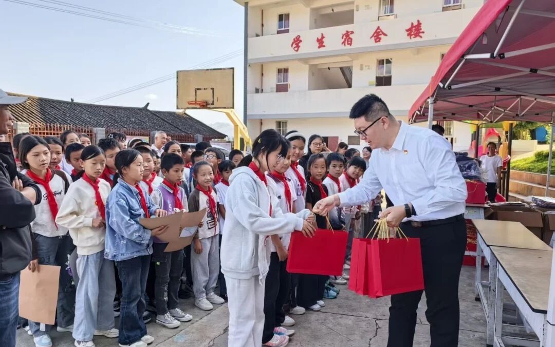 滬東中華攜手七〇八所、黃埔文沖、六〇五院、廣州公司、深圳???、廣船國際等單位團組織赴云南鶴慶縣,向龍開口鎮(zhèn)金河小學(xué)的孩子們捐贈上百套學(xué)習(xí)用品和文創(chuàng)。